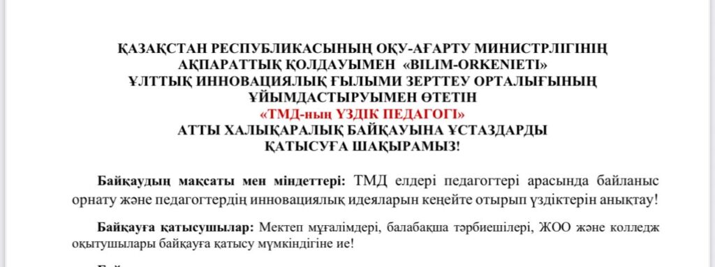 өАстана қаласындағы Республикалық физика-математика мектебінде “РФММ Жыл мұғалімі” байқауы басталды! Байқауға қатысушы барлық ұстаздарымызға сәттілік тілейміз! Жеңімпаз мамыр айында белгілі болады. Қатысушылар:…